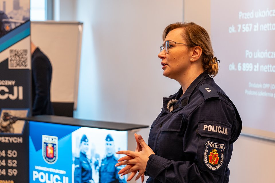 Dzięki obecności funkcjonariuszy Komendy Stołecznej Policji uczestnicy mogli porozmawiać o realiach służby, wymaganiach rekrutacyjnych i codziennych wyzwaniach. Dużym zainteresowaniem cieszyły się warsztaty kryminalistyczne oraz możliwość kontaktu z przedstawicielami różnych jednostek.